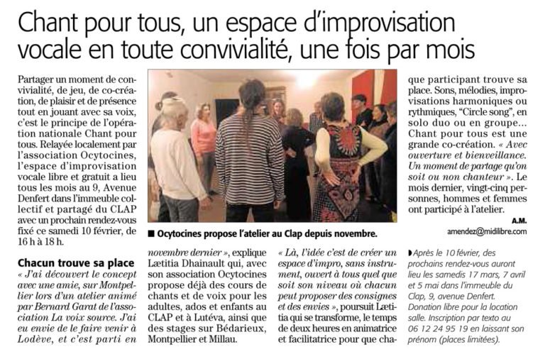 Je reviens de nouveau sur Lyon ce mois d’avril, et j’en profite pour refaire une tournée Chant pour Tous dans […]