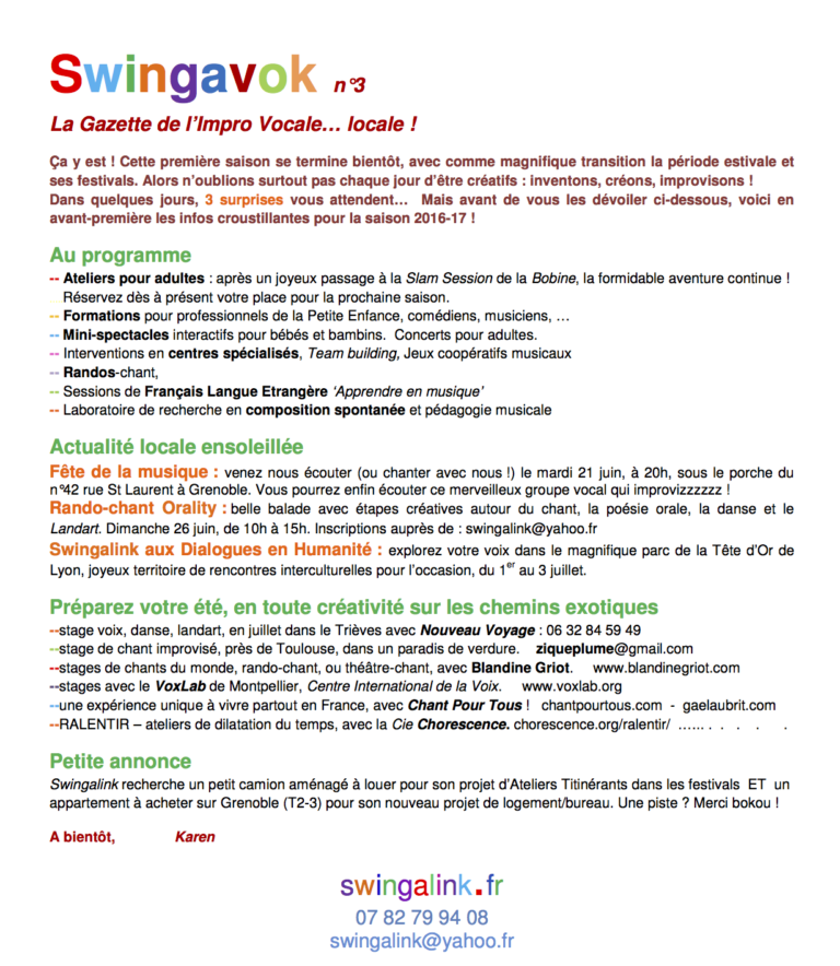 Troisième édition de la gazette Swingavok, avec plein d’événements intéressants autour du chant improvisé, notamment des événements gratuits à Grenoble […]