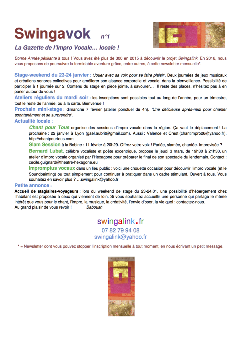 Les chants pour tous de Lyon et de Crest sont mentionnés dans Swingavok, la « gazette de l’impro vocale locale » de […]