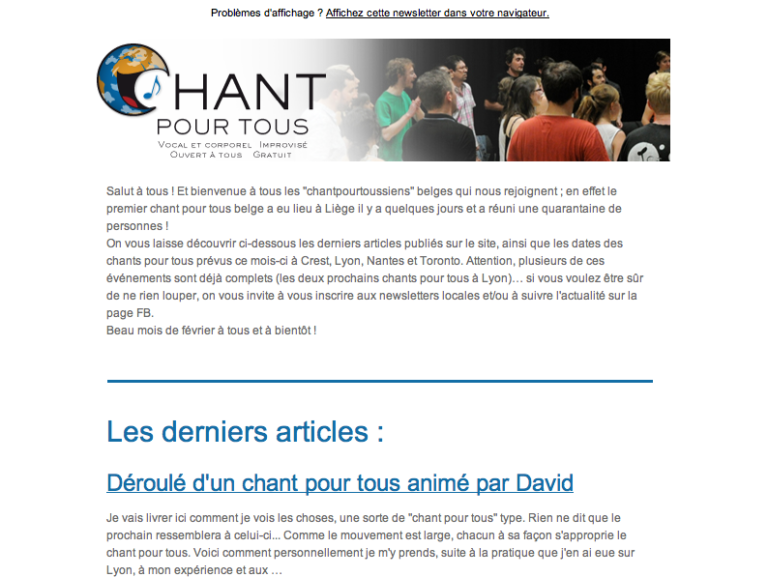 Chant pour tous étant un mouvement communautaire bénévole, tout le monde peut y apporter sa précieuse contribution. Bien sûr il […]